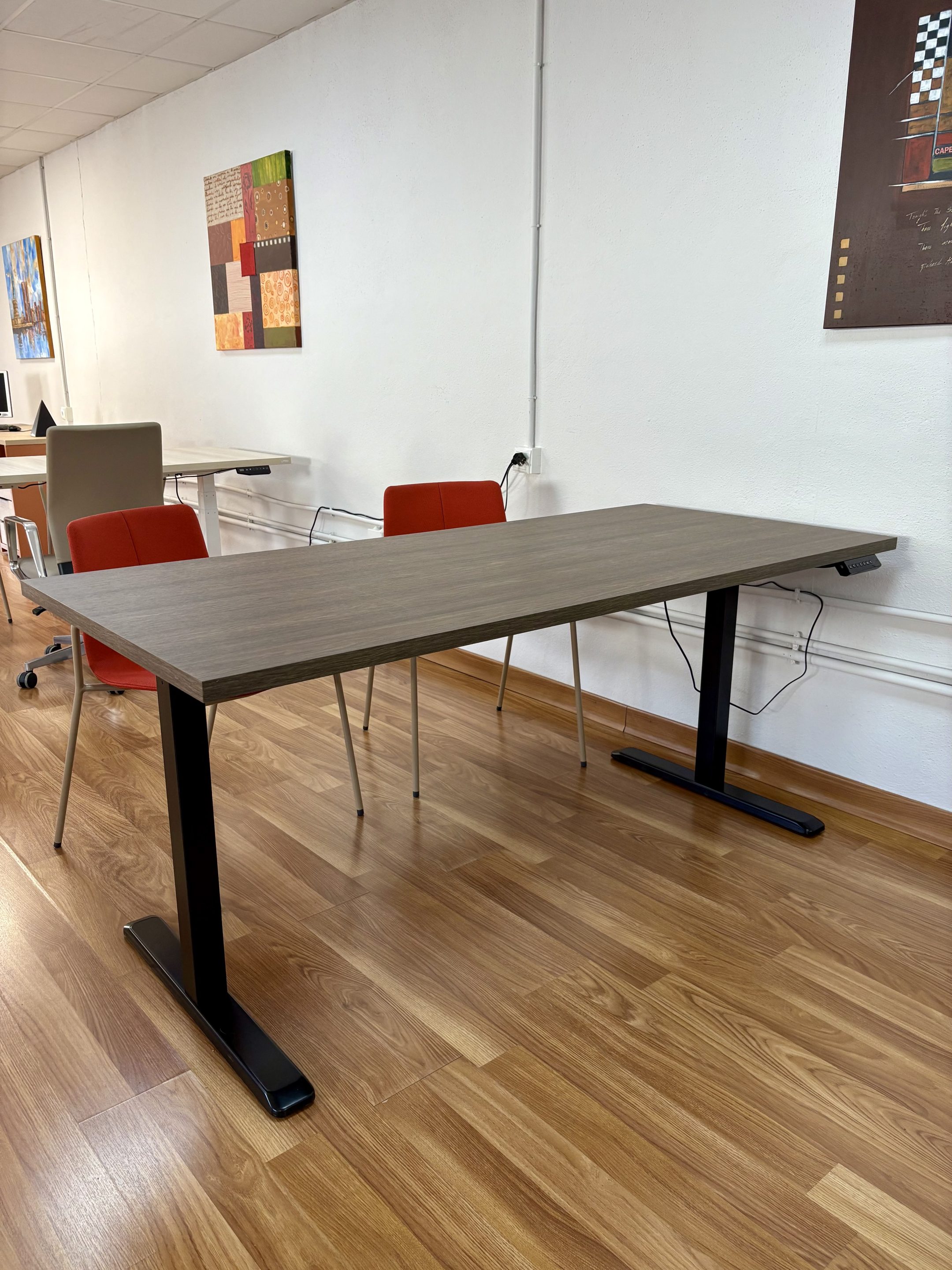 - Taula: 180 x 80 x 73-123 cm. Acabat “Roble Palma” (Bimelaminat de 30 mm cantejat).