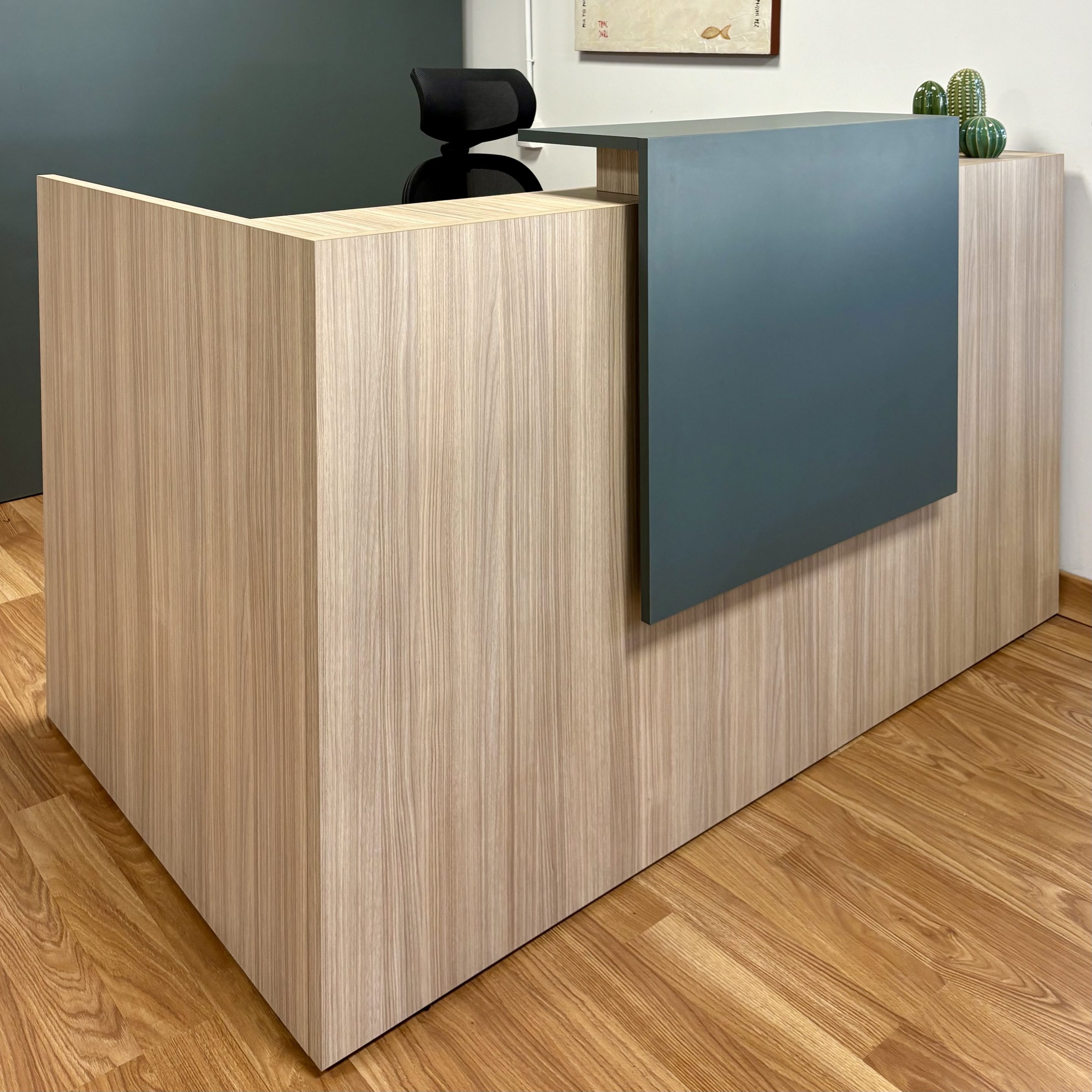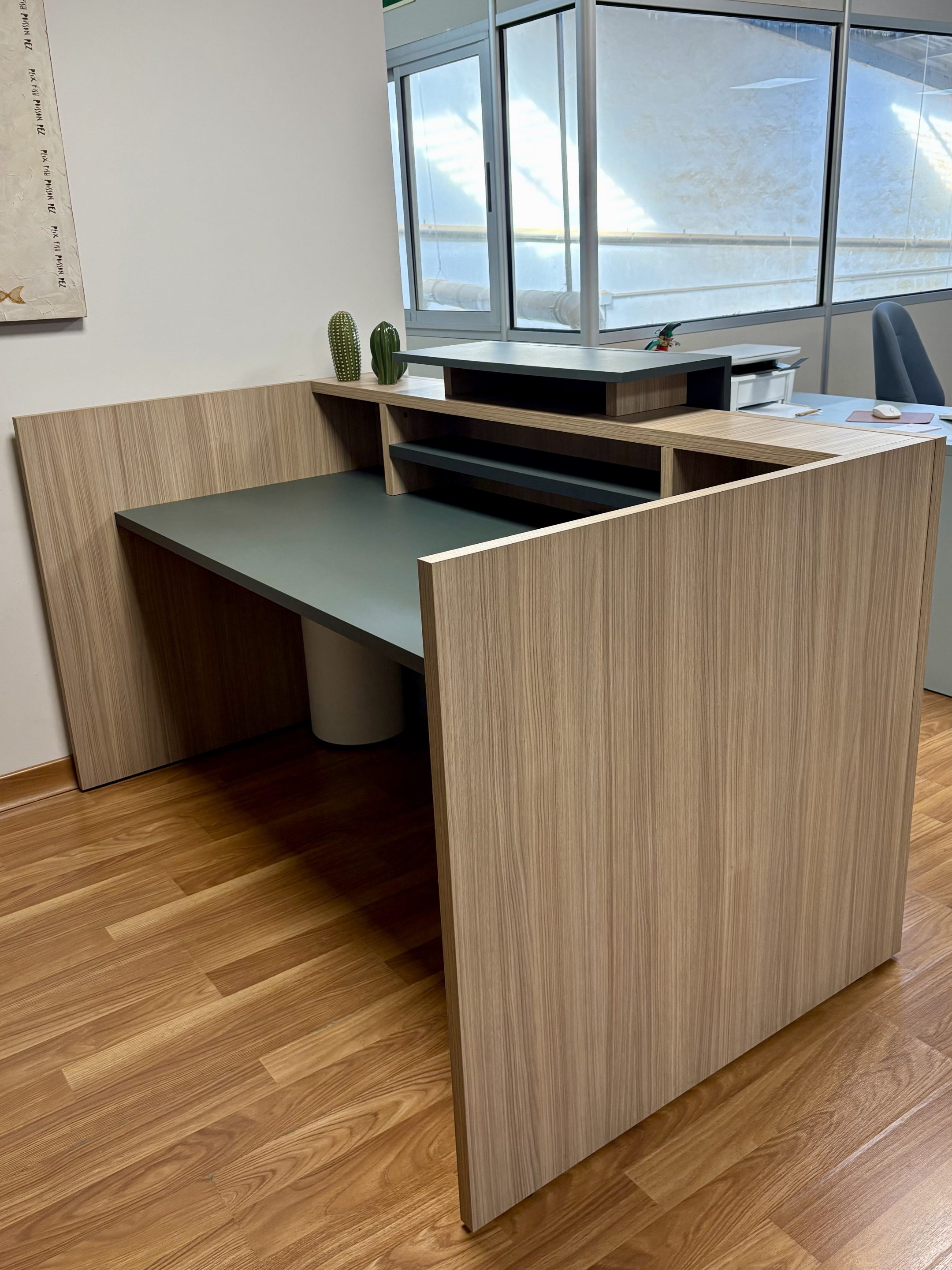 - Mostrador : 180 x 30 cm. Acabado Nogal Boheme (Bimelaminado de 30 mm canteado).